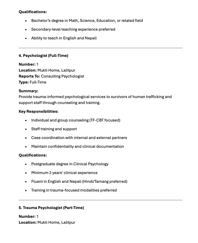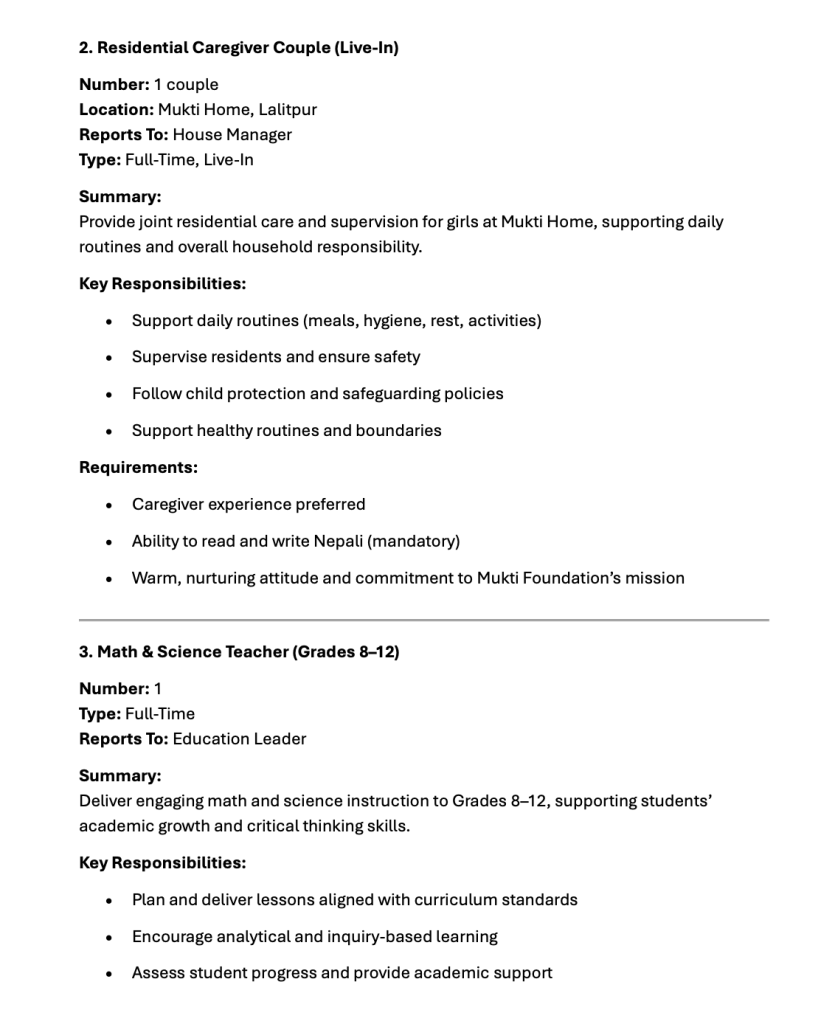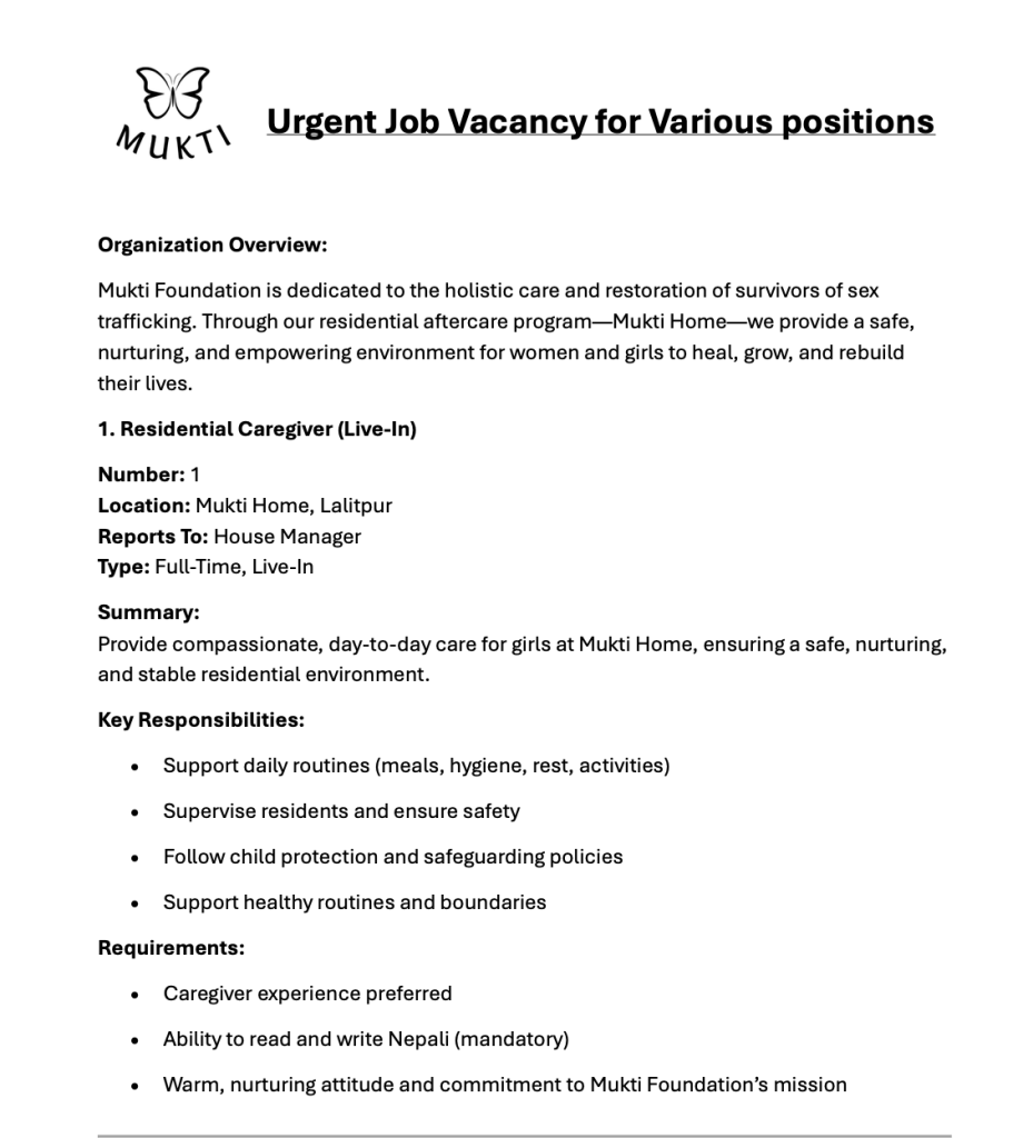 • Vacancy at Mukti Foundation